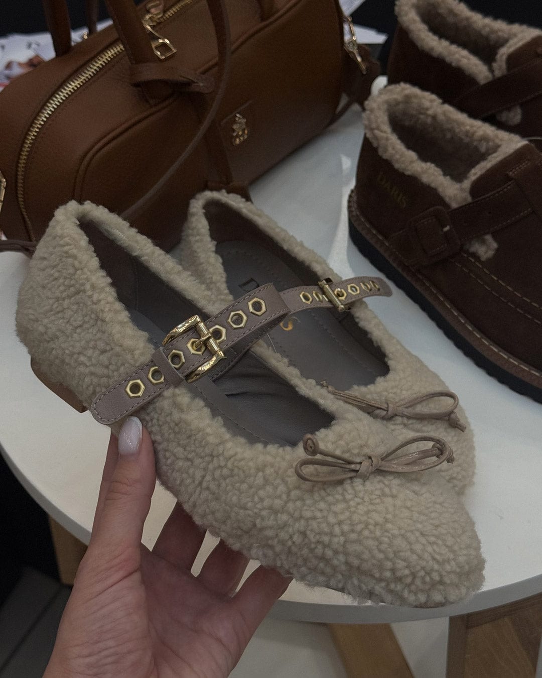 Дамски вълнени балерини в бежово с тънка каишка w648