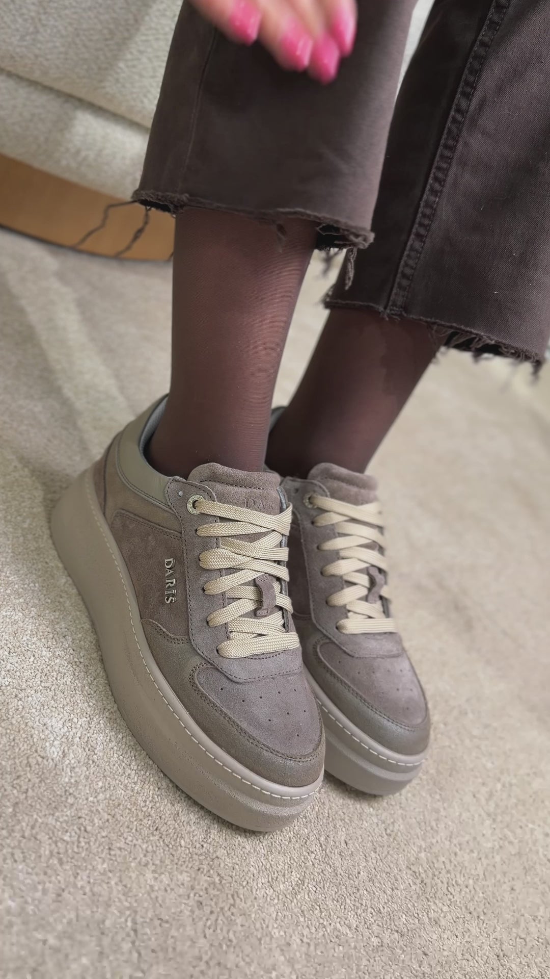 Дамски велурени сникърси с пух в тъмнобежово w641