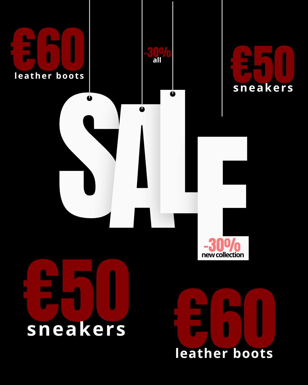 Sneakers - €50, Boots and ankle boots - €60: